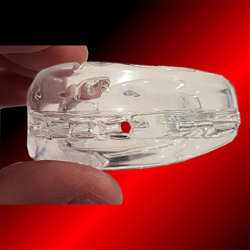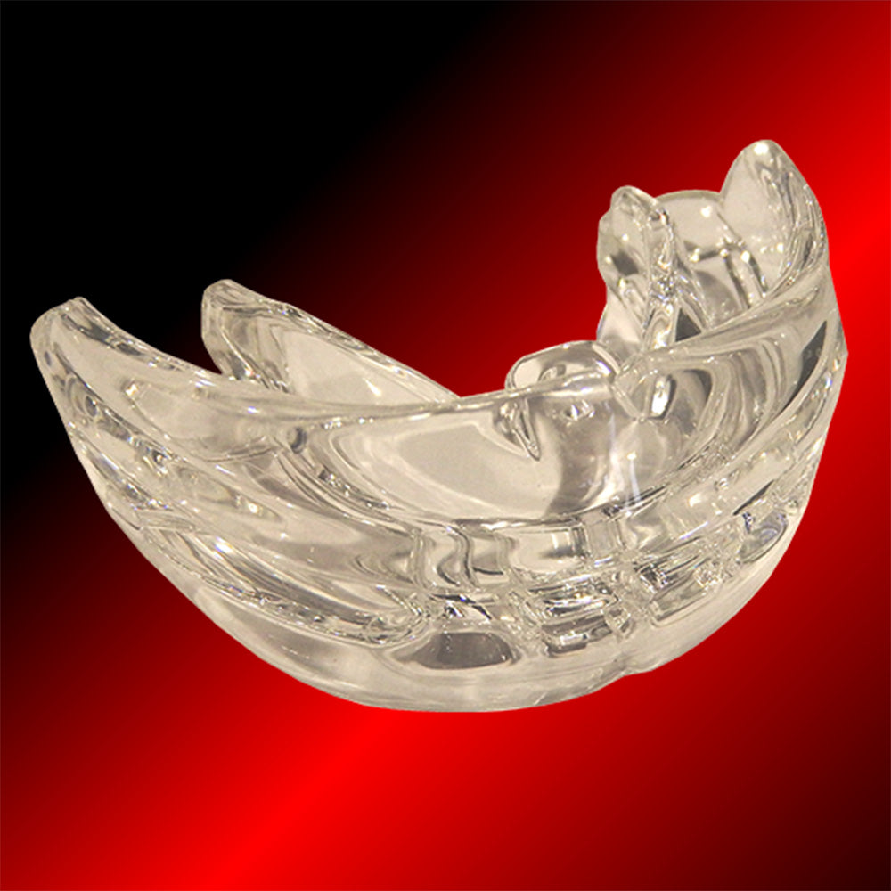 Rather than being heated and moulded to the upper and lower jaws like other products, this premium mouthpiece is flexible and soft and adjusts the position of the jaw gently into the right position, offering additional benefits. Extremely comfortable. Hollow molar cavity for gentle TM Joint decompression .