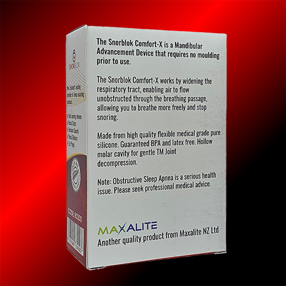 A premium quality stop snoring mouthpiece that doesnt require heating and moulding. Made from a pre-moulded soft silicone material, the Comfort X is otherwise known as a Mandibular Advancement Device.