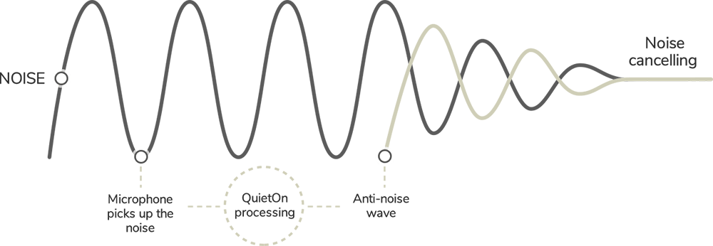 QuietOn Sleep includes the option to switch between the silencing and the hearing mode.