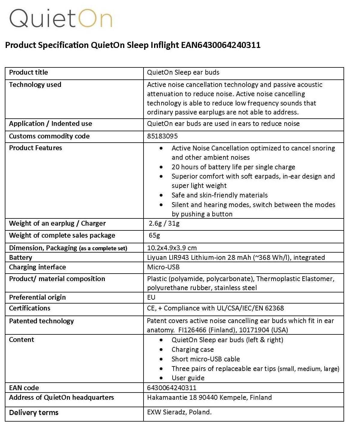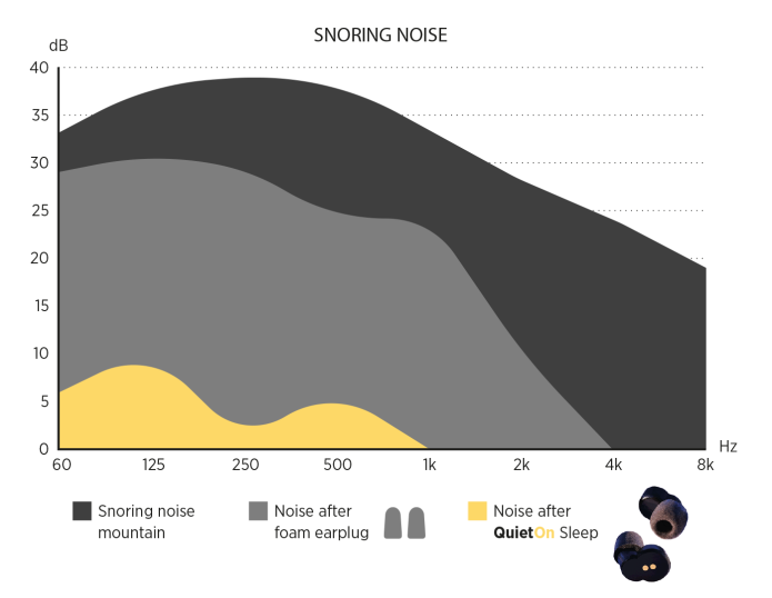 QuietOn provides optimal noise reduction across the whole audible spectrum, however they are most effective for low frequency sounds such as snoring or ambient sounds coming through walls.