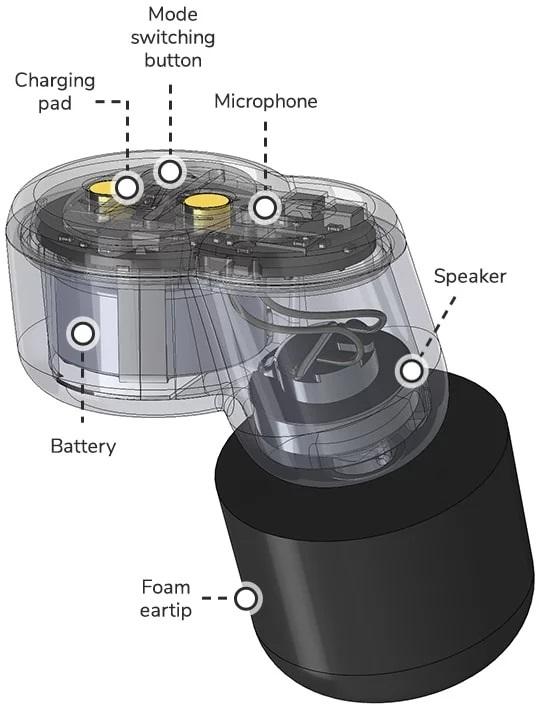 The energy for the device is provided by a re-chargeable battery and the soft memory foam ear tip ensures a comfortable and tight fit into the ear to maximise the passive noise cancelling effect.